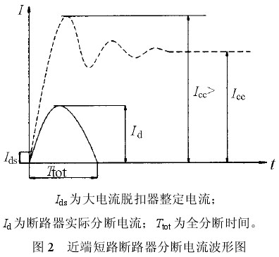 中远端的短路电流,由于线路电感的作用,τ值增大,短路电流变化相对缓慢,初始上升率较小,中远端短路特性示意图略。