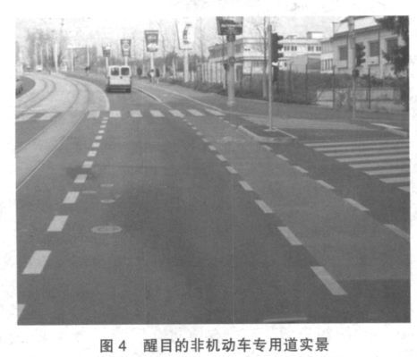 “行人优先、汽车让人”作为交通规则的基本原则。在瑞士道路上的人行横道线间距很密,有人行横道线处都有人行指示灯,当行人过街时候,可以随时按人行灯按钮,则车行方向红灯停止通行,人行为绿灯通道;在没有人行指示灯的路上,不少汽车司机在碰到行人要过马路时,常常善意地停下来,挥手示意,请行人先走。这样设置的好处很多,在没有行人过街的时候,机动车一直绿灯通行的,极大地节约了社会成本(见图4)。