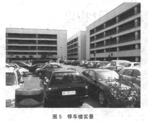 另外,许多大城市在机场、火车站等地都建造在大型停车楼,大大节约了占地空间。在马德里有一座结合立交型式修建的大型停车场,虽然其运营的过程中存在着很多弊端,但是这种充分利用地下空间和立交空地,节约土地资源的思路是值得学习的(见图 5)。