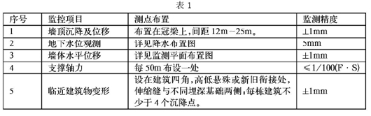 深基坑开挖施工过程中,影响周围建筑物安全的因素有两个。一是因地下水流失使建筑物基础产生不均匀沉降;二是地基土体变形,造成建筑物有不同程度的裂缝出现,影响正常使用。对于地下水位和地基土体变形的问题,采用设置沉降标和地下水位观查井的方法对以上两情况进行动态观测。