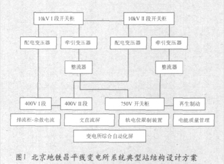 昌平线变电所综合自动化系统与供电系统的10kV开关柜、750V开关柜、0.4kV开关柜、0.4kV有源滤波装置、牵引变压器、硅整流器、配电变压器、排流柜、牵引网电动隔离开关、制动能量消耗装置、钢轨电位限制装置等配置的综合测控保护装置、智能采集装置通过通信接口连接实现集中监控。