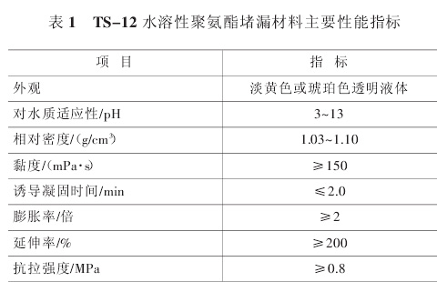 TS-12 水溶性聚氨酯堵漏材料的主要性能指标见表 1。