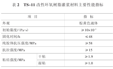 TS-11改性环氧树脂灌浆材料的主要性能指标见表 2。