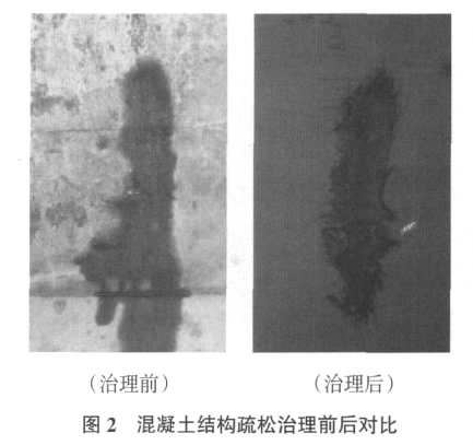 经过多次灌浆处理,达到了衬砌表面无渗水的效果,实现了良好的堵水效果。图 2 为混凝土疏松渗漏治理前后的对比照片。