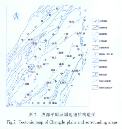 成都市快速轨道网规划如图1 所示, 成都平原及地层构造如图2 所示。