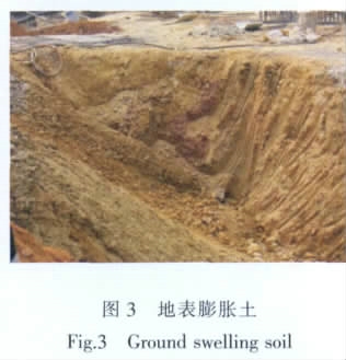 膨胀性岩土具有以下特点:(1) 粘土为微透水层,透水性、富水性均较差,地下水主要为上层滞水和泥岩裂隙水。 (2)膨胀岩土遇水软化、膨胀、崩解,失水开裂、收缩;成都市大气影响急剧深度为1.35m,大气影响深度为 3.0 m。 (3)膨胀力大,粘土膨胀力为100~200 kPa,最大达到 340 kPa;泥岩膨胀力为60~160 kPa、最大达到 500 kPa。