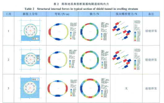 ,得出了盾构隧道在不同膨胀岩土层、膨胀力、埋深和拼装方式条件下的结构内力值,对隧道结构设计起到了指导作用