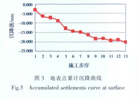 地表累计沉降曲线如图3 所示。