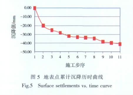 地表累计沉降曲线如图5 所示。