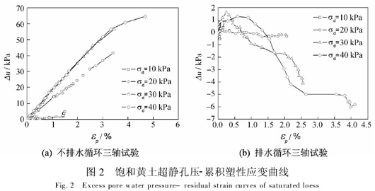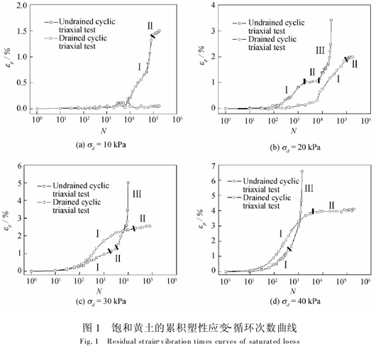 由此可见,采用排水循环三轴试验研究地铁行车荷载作用下饱和黄土的累积塑性应变是比较合理的.