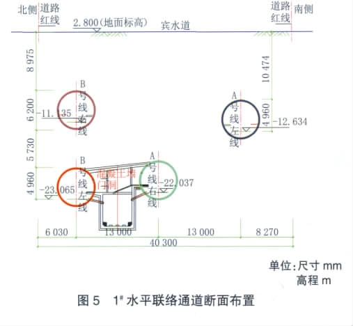 (1)联络通道设置在本条线内,左右线相连,区间综合管线布置等设计与标准水平联络通道区间方案相同。