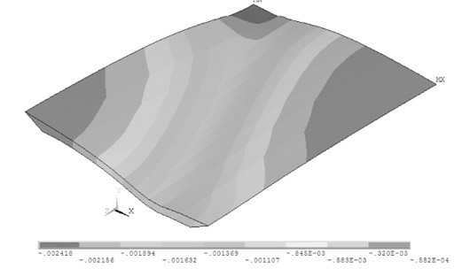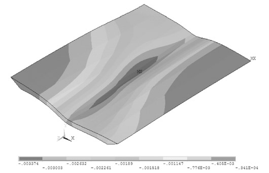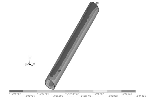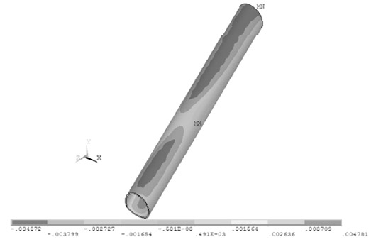 图 6 出入线隧道施工完成后出入线的竖向位移( 单位: m)