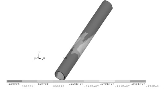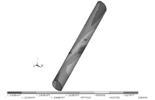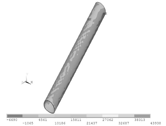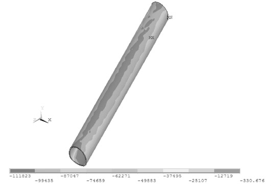 图 10 出入线隧道自身施工后支护结构的第三主应力( 单位: Pa)