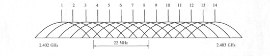 如图 3 所示,国内规定可以使用的 2. 4 GHz 频段上只有 3 个不重叠的频点。系统工作在这三个频点上时,相互之间没有干扰可以同时运行。