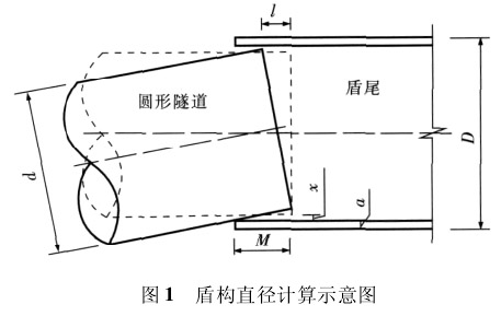 圆形隧道盾构机的壳体尺寸包括直径和长度,盾构直径计算方法是多种的,但其思路基本一致,现根据图 1 所示的简单计算方法做介绍: