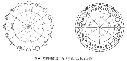 ( 1) 千斤顶数量多,更便于分区及分组布置,对衬砌管片产生的推力更趋于均匀;