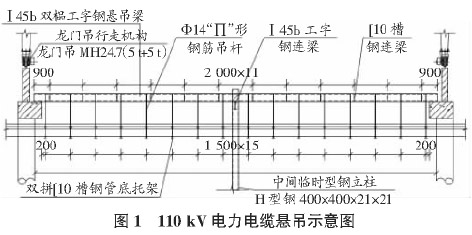 根据本站的实际情况,拟对110 kV 电力电缆采用双根工字钢加管底托梁的悬吊方式。