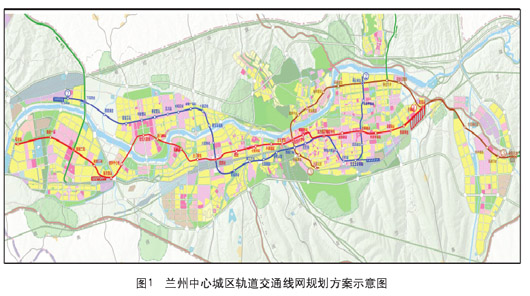 每个城市具有各自的特点和外在条件,有的地下文物众多,有的旅游观光资源丰富,有的具有大量的山水资源,有的地下地质条件复杂,有的经济实力不强。我国地域经济发展不平衡,如西部的兰州、西宁和银川等虽为省会城市,但与东部城市相比,经济实力相对较弱。兰州市中心城区“两山夹一河”,具有典型的狭长带状地形特征,致使交通呈“东西拥堵,南北不畅”的局面。兰州未来将跳出河谷向外围发展,中心城区具有明显的带状组团式特征,并呈现出向外围辐射的空间形态。这种城市格局通过发展轴加以串联,中心城区狭长带状型地理特征使兰州的车流、人流在城市内的移动宛如水在水渠中流动,形成自然的交通发展轴。该发展轴需要建设城市轨道交通来解决交通问题。基于经济实力等因素,以轻轨系统建设较为适宜。兰州中心城区轨道交通线网规划方案见图1。