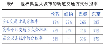 北京的轨道交通方式在公交系统中的分担率不到30%,对比伦敦、巴黎、东京等世界大 城市还有着明显的发展空间(表6),按照北京市“十二五”规 划,2015 年轨 道交 通方式在公交系统中的分担率将达到50%。