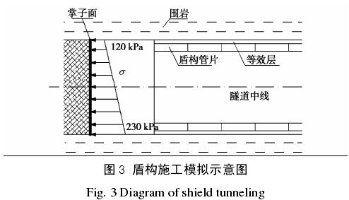 为了得到不同土仓压力下风道的变形和应力情况,在本次数值模拟中,考虑了 3 种不同的土仓压力:0.5σ,1.0σ 和 2.0σ。