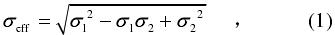 模型中的暗挖风道采用板单元模拟,其应力状态比较复杂。本文采用等效应力 σeff来描述暗挖风道的应力状态[15]。定义 σeff如下: