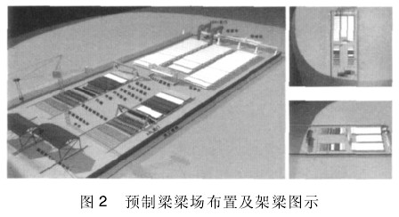 本标段高架区间沿线大部分地区为农田和果园,预制厂地可采用临时租用场地,根据线路纵断坡度的设置,考虑从小里程方向开始架梁,预制场地设在小里程侧。鉴于跨绕城高速及跨成昆铁路货车外绕线节点桥施工控制,在场地尽量平整和不占用住宅的原则下,预制厂地选择在成昆铁路货车外绕线右侧里程约为 YK46 +200 附近,大型提升站将预制梁直接放到桥位运梁台车上开始架设。
