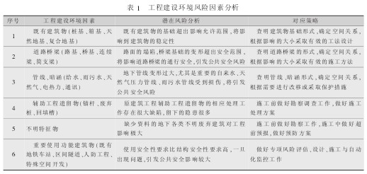 城市中心区以往的工程建设活动已经对地下空间进行了多次重塑,地铁工程具有相对较多的风险源存在,主要的工程建设环境风险因素分析见表 1。