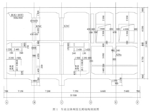 某地铁工程车站为地下 2 层(局部 3 层)明挖岛式车站,有效站台宽 14 m,车站总长 172.3 m。车站主体结构剖面如图 1 所示。