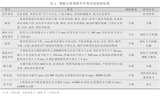 模板支架构配件外观质量及技术资料要求如表 1所示。