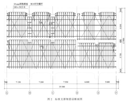 以结构标准断面为例,模板支撑架搭设横断面如图 2 所示。