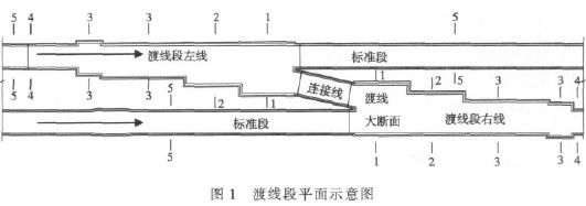 在地铁工程项目建设中,线路上渡线的设置不可缺少,由于渡线段结构断面形式变化较大,给渡线段的暗挖施工带来一定难度。 一般暗挖渡线段施工是在附近地面设置施工竖井,而且基本是在变化较小的结构断面之间过渡暗挖施工。 但北京地铁四号线 12 标段西直门—动物园区间渡线段在附近无法设置竖井,若在较远处设置施工竖井及施工通道,势必增加较大的工程成本,因此,在施工该渡线段时,进行了直接从标准段向渡线段最大断面的过渡暗挖施工,渡线段最大断面宽度是标准段的 2 倍,这种在差距较大断面之间从小断面向大断面进行暗挖过渡施工还没有先例,为此,对这种暗挖过渡施工进行了施工技术研究,并取得成功。