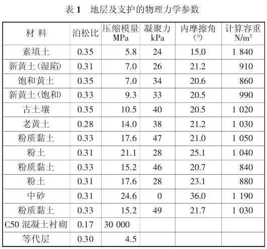 本文所采用的参数是西安市玉洒区间的实际地层参数,具体见表 1。