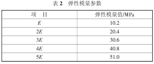 根据区间段地质资料,本文分别模拟了弹性模量取值为 E、2E、3E、4E、5E (E 为各土层按层厚的加权压缩模量平均值,其余按同一比率换算到每一层土体)工况下的数值计算。具体弹性模量见表 2。