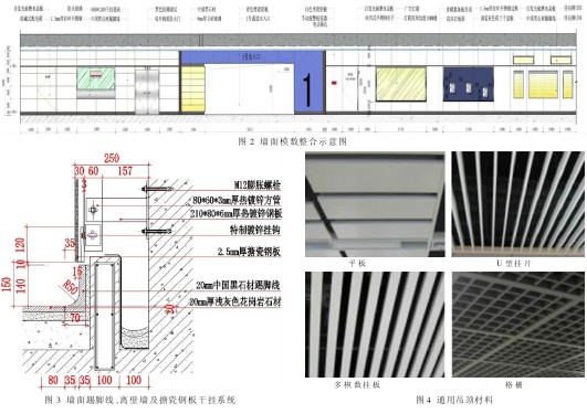 地铁车站内专业接口众多,如车站风水电、通信、信号、自动售票机、检票闸机、BAS、FAS、电扶梯、安全门、导向等,装修设计一个重要环节是在遵循技术规范基础上,统筹各系统专业终端设备及各专业管路通道与公共区墙、顶、地、柱面装修的整体协调。