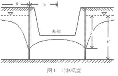 第一,涌水量计算。根据《建筑基坑支护技术规程》(JGJ120—99)确定降水影响半径 R 计算稳定涌水量: