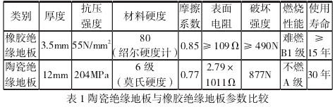 陶瓷绝缘地板与橡胶绝缘地板参数比较如下 :