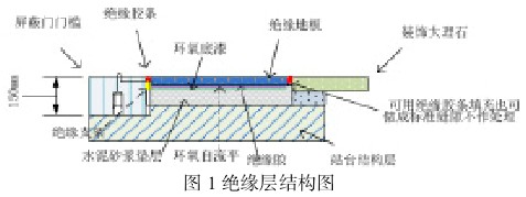 采用类似装修干挂石材的施工方案 ,地板四周立面及底面均匀涂抹专用防水、高强度绝缘粘贴胶 ,地板间缝隙将被防水绝缘胶填实,保证在绝缘区铺设的每块地板都是独立的绝缘体。结构图如下 :