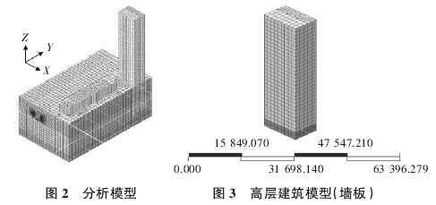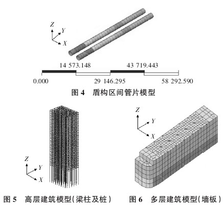考虑到地铁工程保护的控制线范围在 50 m 左右,综合考虑地块的平面位置,选取了 130 m × 80 m 左右的平面范围进行计算。综合考虑地质情况、地块基坑底部和盾构区间的深度后计算的深度取为 60 m。
