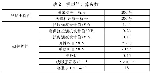 建筑结构长期承受各种荷载并受到雨水、大气等侵蚀,其材料必定出现各种损伤及劣化。模型计算参数取值如表 2 所示。