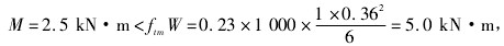V = 15 kN < fzbz = 0. 11 × 1 000 × 1 × 0. 36 = 40 kN,满足规范要求。