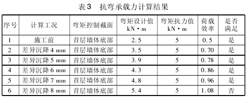 对华德眼科医院结构计算分析得出以下结论: 差异沉降达到8 mm 时,砌体结构抗弯承载力不满足规范要求。差异沉降达到8 mm 时,砌体结构抗剪承载力不满足规范要求。差异沉降达到8 mm 时,砌体结构抗压承载力仍不满足规范要求。