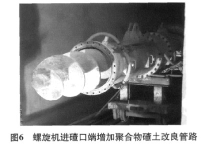 3)在螺旋机上增加检查口,当多块石块堵塞螺旋机时打开检查口直接快速清除石块,同时在螺旋机进碴口增加2路聚合物碴土改良管路,高水压时采用高分子聚合物动态改良技术杜绝喷涌塌方,工序简单、成本低、施工安全。