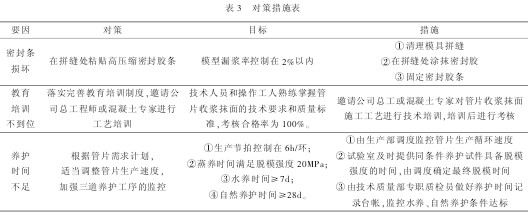 针对密封条损坏、养护时间不足、教育培训不到位这 3 项主要因素,经过讨论、比较,最后制订了对策措施表,见表 3。