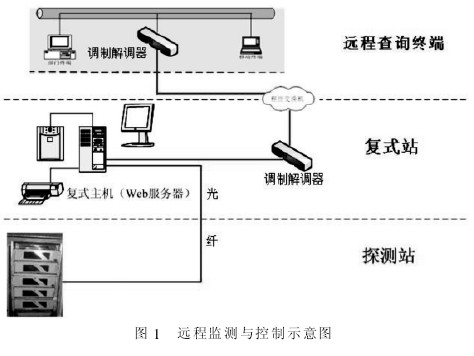 由于探测站和复式站间的通讯是通过物理光纤连接实现的。要实现对复式站以及探测站的远程控制与监测,设计利用调制解调器通过拨号方式建立主机和客户机之间的连接,再通过远程桌面来实现远程控制(如图1所示)。这样不仅对于采集的列车轮缘数据能够实时的查看,对于运行系统的工控机的工作运行状态也能够及时掌握。这样就可以更早的发现并排除计算机运行环境可能发生的对检测系统产生影响的因素。
