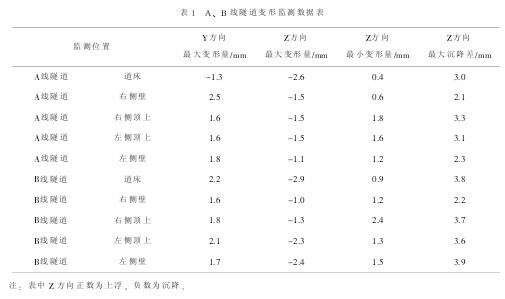 地铁A、 B线隧道Y、 Z方向变形监测数据汇总见表1。