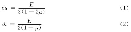FLAC3D中摩尔-库伦本构模型采用体积模量bu以及剪切模量sh定义单元属性。其转化式分别为: