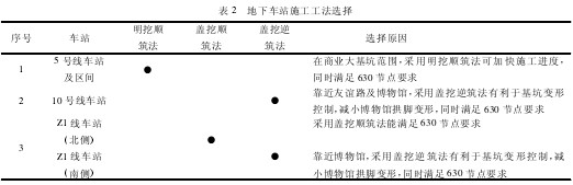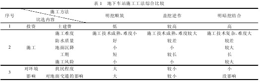 地下车站施工工法综合比较见表 1。