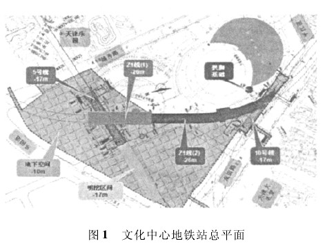 3) 车站工期紧张。受地下商业及地面景观施工工期影响,要求地铁车站结构必须在 2010. 6. 30完成顶板结构以提供景观绿化的场地,并于2011. 12 底完成全部的车站结构。