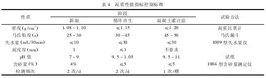 泥浆系统的参数根据本工程的地质情况及以往地下连续墙的施工经验,本工程新鲜泥浆级配及性能指标见表 3、4。
