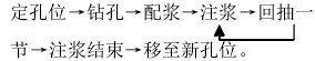 回抽钻杆注浆:在进行注浆的时候边注浆边根据压力与注浆量的变化回抽钻杆,严格控制提升幅度,一般每步不大于15~20cm,匀速回抽。注浆一定要按程序施工,每段进浆要准确,注浆压力要严格控制在0.15~0.3MPa。当压力突然上升或从孔壁溢浆,应立即停止注浆,采取调整注浆参数或移位等措施重新注浆。土、砂层容易造成坍孔时,采用前进式注浆或往返式注浆,否则采用后退式注浆;每段注浆量应严格按设计进行。